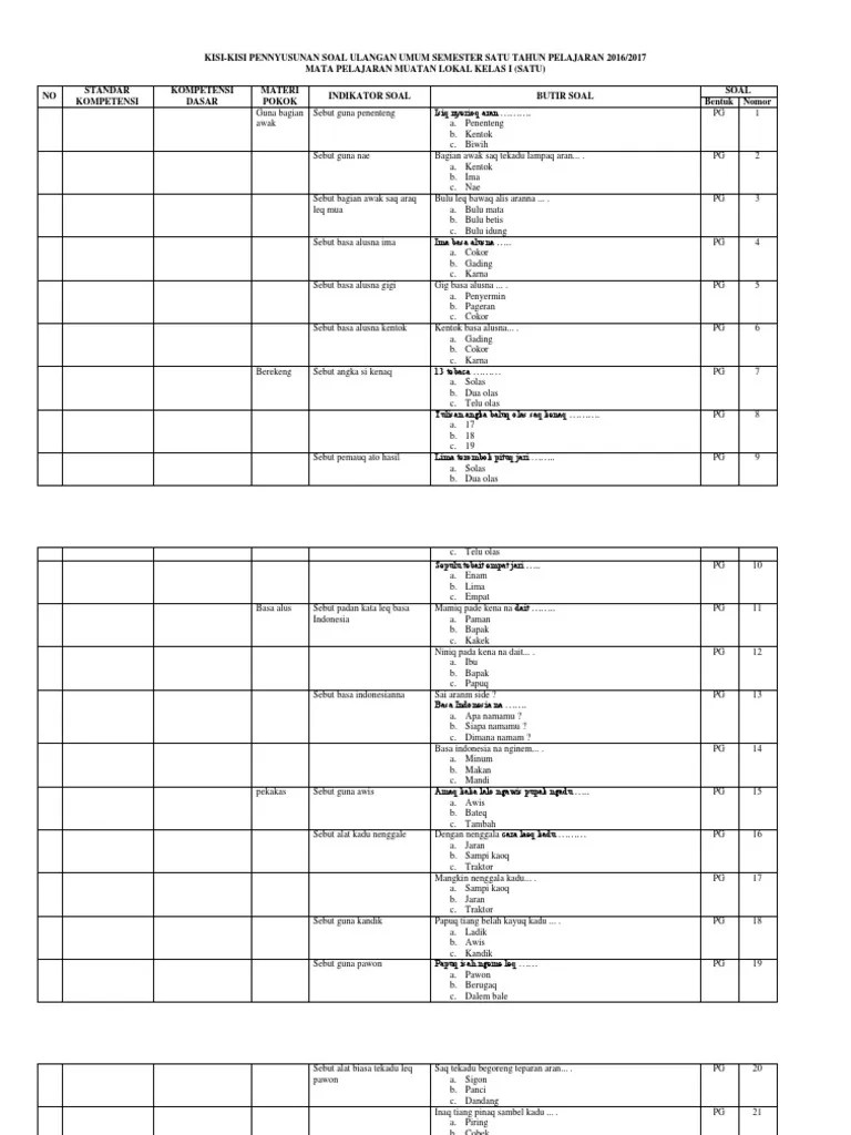 Kelas x xi xii soal uas tik kelas xi semester 1. Kisi kisi soal matematika kelas xii ips semester ganjil. View soal mulok kelas xii docx from agama 10 at smk negeri 2 pekalongan. Soal uts 2 bahasa sunda kelas 1 terbaru dan kunci jawaban. Smp kelas vii/ semester 1. I 2 penyusunan dan penyerahan soal uas mulok semester i 3 penyelesaian progr. Soal mulok bahasa banjar kelas x. Xi, xii sma semester 1 dan semester 2 revisi terbaru. Top pdf kisi kisi soal uas mtk kelas xii ipa dikompilasi oleh 123dok.com. Soal penjas ulangan semester ganjil kls xii.
